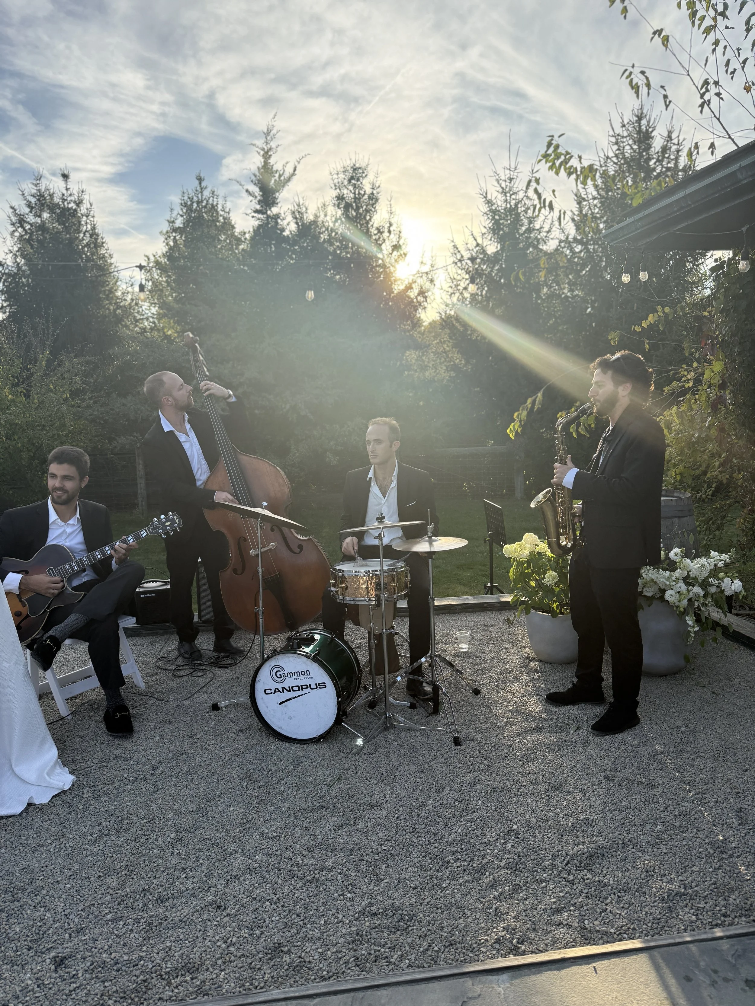 For trio, can remove drums and substitute voice or a horn player (saxophone/trumpet/trombone)